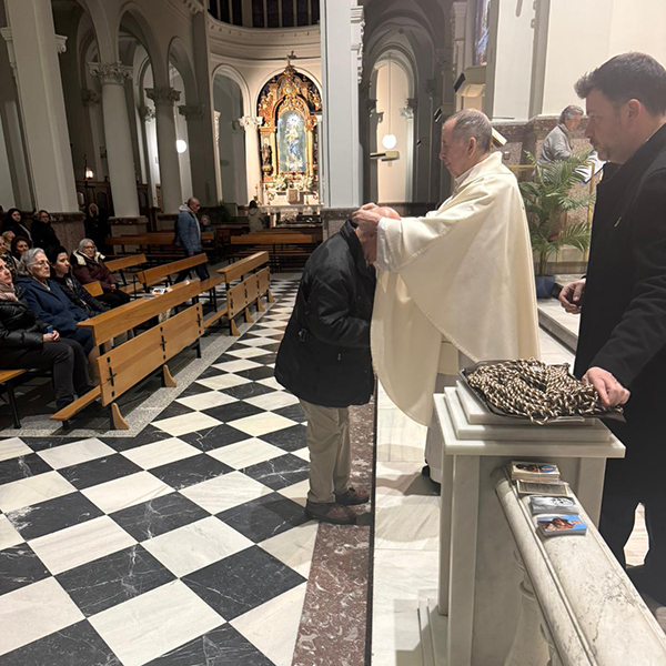 Un relieve especial tuvo la misa celebrada en la basílica de Jesús de Medinaceli por la tarde a las 19 h., misa de la fraternidad en la que se hizo presente, la Asociación de Madrid promotora de la devoción al humilde limosnero.